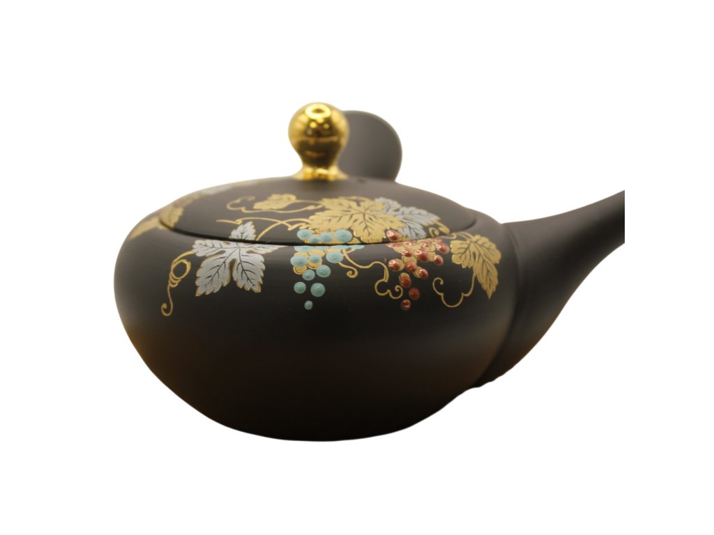 Stylová tmavá čajová konvička se zlatavým odstínem glazury připomínajícím barvu vína nabízí originální a elegantní vzhled.