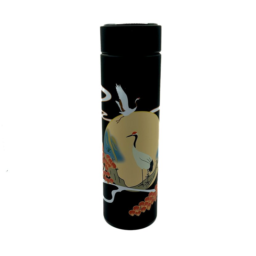 Tato elegantní nerezová termoska vás zaujme nejen svým digitálním teploměrem na víčku, který ukazuje aktuální teplotu nápoje, ale i svým stylovým designem inspirovaným Asií – jemné vzory, tradiční symboly a klidná estetika, která potěší oko i duši.